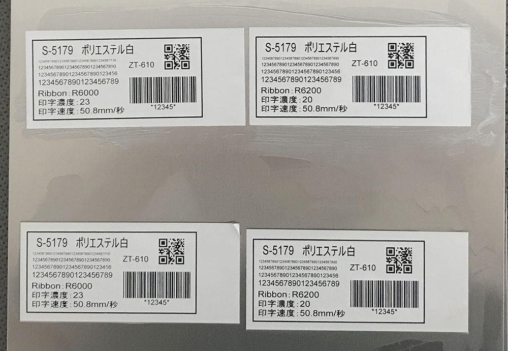 ラベル印字には熱転写プリンタが必要となります。また、印字用の推奨リボンとして、油面にはR6000シリーズリボン、エタノール面ではR6200シリーズリボンを推奨します。なお、購入前にはS-5179のサンプルを入手し、お客様が実際の使用される環境下でテストを行ってください。