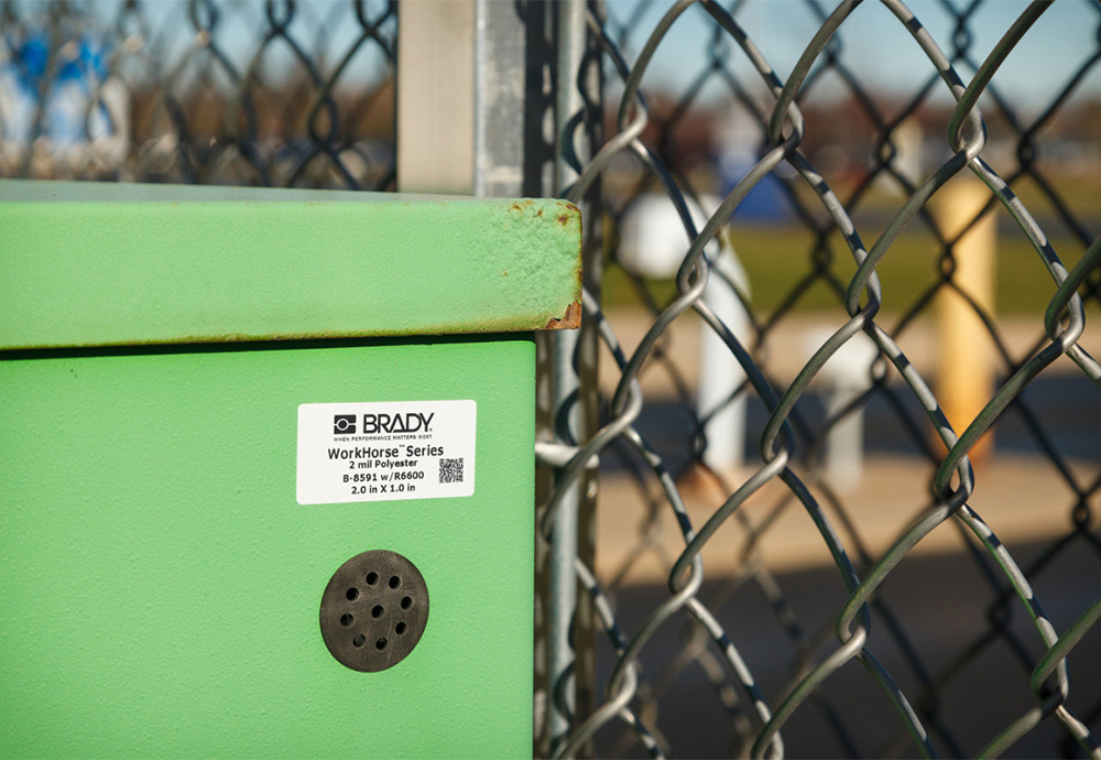 B-8591はブレイディ最強の耐候性銘板ラベル。保護フィルムや特別な加工なしで屋外使用が可能です。また、カラーバリエーションも豊富。白・銀・黒・黄の4色を取り揃えておりますので、ご使用の環境に最適なカラーをお選びください。