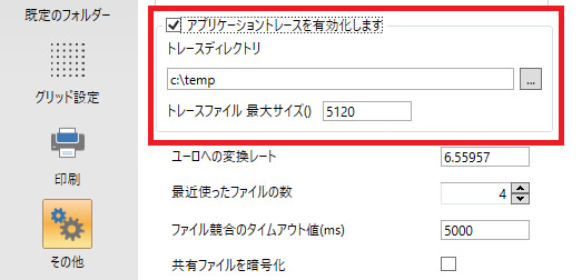 従来の設定ファイル等ではなく、UI画面上からアプリケーションのトレース(ログ収集)を有効化・設定できるようになりました(「管理者権限として実行」での起動が必要)。 |