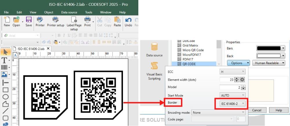 QRコードとデータマトリックスが境界線をサポートするようになりました。