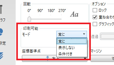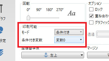 オブジェクトの印刷可否を条件付き(変数)で制御できるようになりました。変数の値が「0」の場合は印刷されず、それ以外の場合は印刷されます