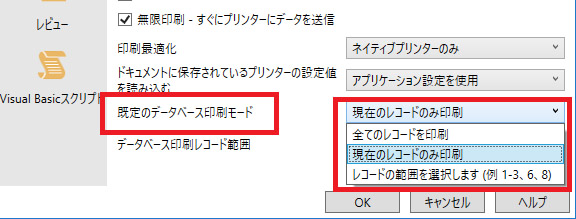 データベース印刷モードの既定値を設定できるようになりました(デフォルトは一貫性維持のため「現在のレコードのみ印刷」となっています) |