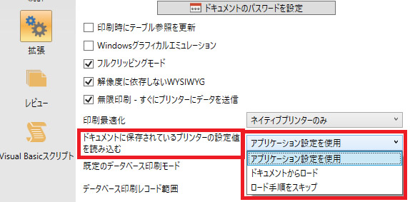 プリンター設定を読み込むオプションがラベル(ドキュメント)ごとに設定可能になりました。 |