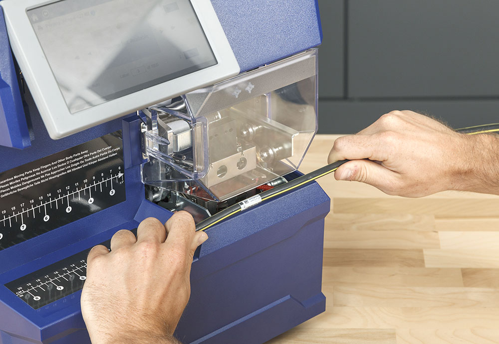 手作業にありがちな品質のばらつきを排除します。A6500は、ラベルのシワや気泡(バブリング)を発生させず、最小限の螺旋巻きでしっかりと密着したラップを提供します。これにより、プロフェッショナルで高品質なワイヤーIDを実現し、高性能な自己ラミネートビニールおよびナイロンクロス素材に対応しています。 |