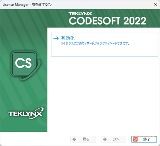 - CODESOFTを起動するとLicense Managerのアクティベーションウィザードが起動されます